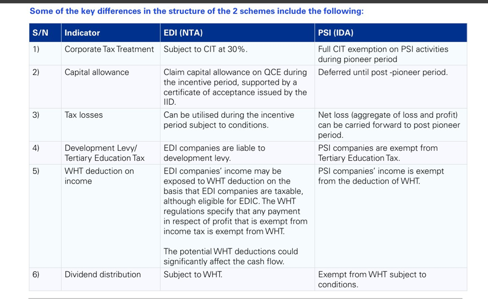 The NTA repeals the Industrial Development Act and replaces the Pioneer Status Incentive (PSI) with the EDI under Part II of Chapter 8 of the NTA. The scheme introduces a targeted incentive regime aimed at stimulating capital investment in defined priority sectors. To qualify for this incentive, the Qualifying Capital Expenditure (QCE) to be incurred by the company on or before production day